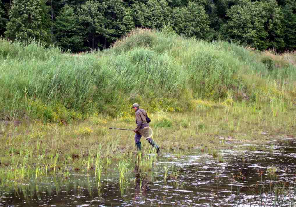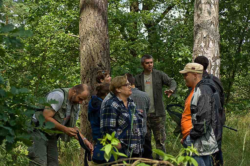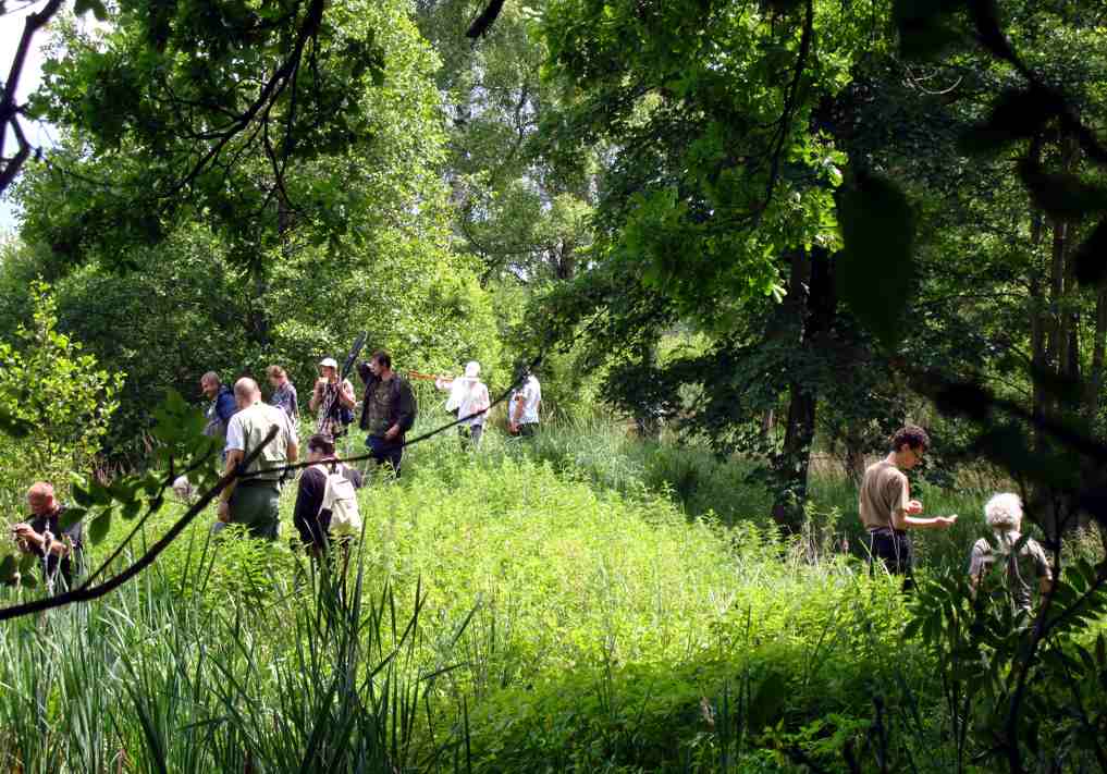 25 czerwca w sobotę pojechaliśmy rano najpierw nad strumień przy rezerwacie Cisy nad Górną Liswartą, gdzie widzieliśmy larwę chronionego szklarnika leśnego Cordulegaster boltonii, później zaś nad rozlewiska rzeki Turzy, gdzie oglądaliśmy nadrzeczną piaskownię, czyli obszar przeobrażony przez człowieka. Następnie szukaliśmy ważek nad meandrującą, nieuregulowaną Liswartą, skąd pojechaliśmy nad zbiornik Hadra koło Lisowa. Obserwowaliśmy tam ślady trąby powietrznej, która przeszła w 2008 r. Trąba ominęła wsie wyłamując szeroki pas lasu. | |||