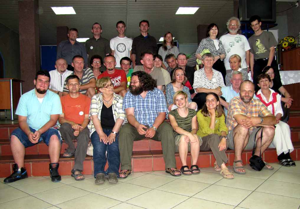 Grupa z każdą chwilą się powiększa, przyjeżdżają coraz to nowi Koledzy. Robimy sobie kolejne zdjęcia grupowe. Stoją od lewej: Stanisław Cuber, Michał Brodacki, Michał Rachalewski, Mariusz Gwardjan, Emilia Grzędzicka, Ladislava Saganova, Jerzy Parusel i Tomasz Parusel. W rzędzie środkowym: Piotr Cuber, Piotr Zabłocki, Bogusława Jankowska, Michał Wolny, Tomasz Karasek, Wiaczesław Michalczuk, Agnieszka Henel, Krzysztof Frąckiel, Mirosława Wieczorek, nieco niżej Joanna Starek, Alicja Miszta, Jadwiga Górnicka, nieco niżej Vaclav Sagan, w czarnej bluzce Elżbieta Dumnicka, w białym ubraniu Ludmiła Litwin. W rzędzie dolnym: Kamil Hupało, Bogusław Daraż, Ewa Miłaczewska, Grzegorz Tończyk, Katarzyna Łąkowska, Julia Dobrzańska i Paweł Buczyński. Zdjęcie zrobił J. Liberski (aparatem P. Buczyńskiego) |